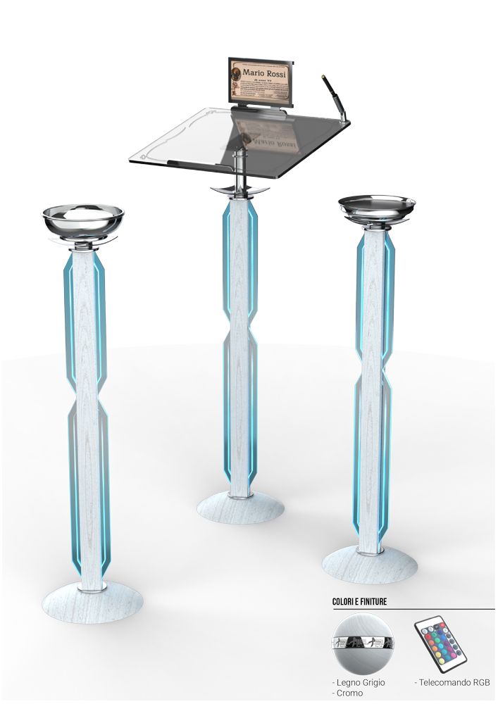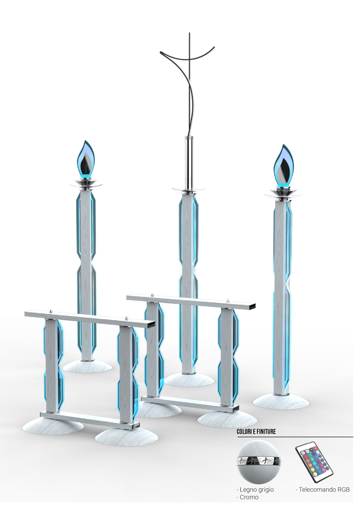 Di seguito puoi vedere i nostri prodotti. Ogni kit è composto da due candelabri, un portacroce e due reggibara.